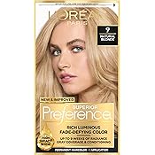 $30.00 (as of 08:31 GMT +00:00 - More infoProduct prices and availability are accurate as of the date/time indicated and are subject to change. Any price and availability information displayed on [relevant Amazon Site(s), as applicable] at the time of purchase will apply to the purchase of this product.)L'Oreal Paris Superior Preference Luminous Fade-Defying Permanent Hair Color, Hair Dye For Up to 9 Weeks of Radiance, Natural Blonde 9, 1 Hair Dye Kit