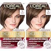 $6.97 (as of 08:31 GMT +00:00 - More infoProduct prices and availability are accurate as of the date/time indicated and are subject to change. Any price and availability information displayed on [relevant Amazon Site(s), as applicable] at the time of purchase will apply to the purchase of this product.)L'Oreal Paris Excellence Crème Permanent Hair Dye, Triple Care Hair Color with Hyaluronic Acid for 100% Gray Coverage, 5 Medium Brown, 1 Kit (Pack of 2) (Packaging May Vary)